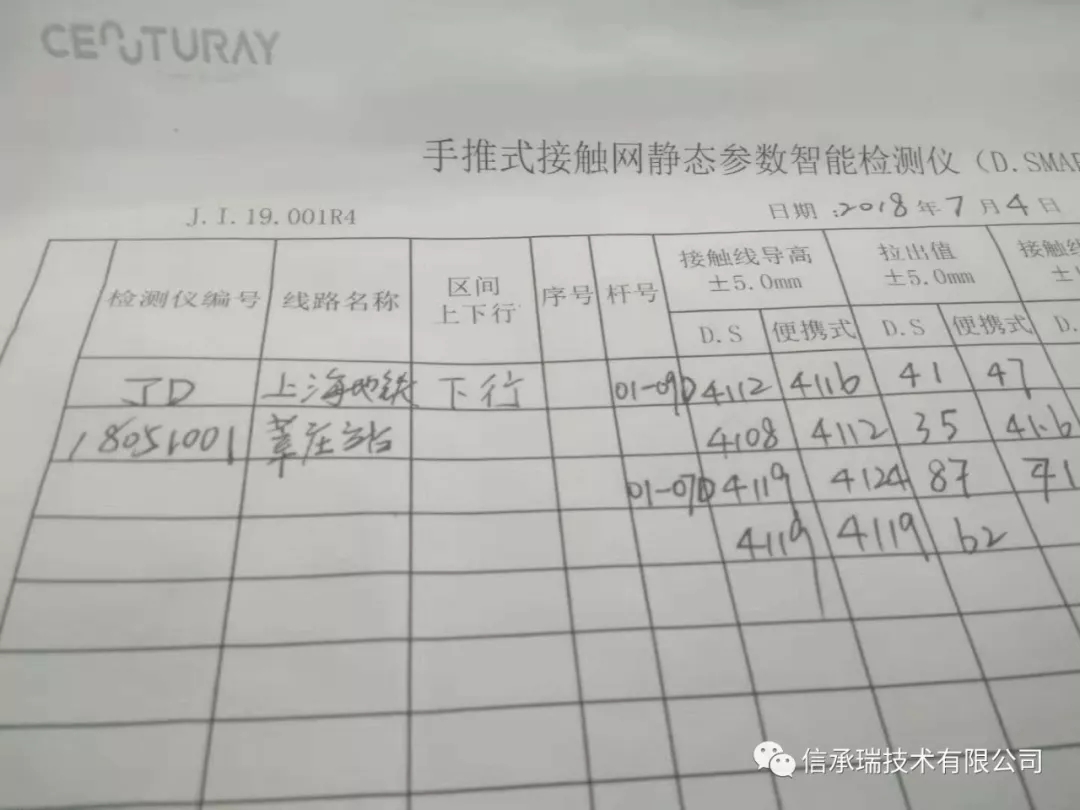 反推小車時里程數的重復疊加。 通過編碼器計數自動消除來解決此問題,無論正推還是反推,都不會影響DR.S對超限點的定位。 軌道超高對檢測結果的影響。 在莘莊站測試時,專門找了一段轉彎半徑較大的軌道進行檢測,在左右軌道高度不一致的情況下檢測結果仍然準確,并可實時顯示超高數值的功能。 就這樣,提出問題、改進功能、上線測試……一次又一次循環往復的工作中,信承瑞人孜孜不倦、持之以恒,利用天窗點輾轉上海地鐵多個站點,為客戶消除了一個又 一個顧慮,讓他們對DR.S充滿信心。
